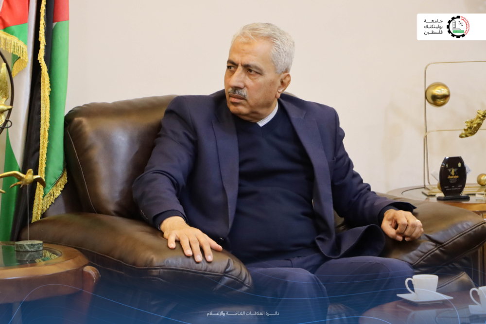 الاثنين 29/12/2025- استقبل رئيس جامعة بوليتكنك فلسطين، الأستاذ الدكتور مصطفى أبو الصفا، وفدًا رفيع المستوى من اتحاد صناعة الحجر والرخام الفلسطيني المنتخب برئاسة السيد عمر ديرية، السيد أيمن الأطرش- نائب رئيس الاتحاد/ السيد صبحي ثوابتة- عضو مجلس ادارة، والسيد احمد ابو رومية- عضو مجلس ادارة، السيد شادي شاهين- مدير عام الاتحاد، والسيد وسام الطروة- مدير الاتحاد في الخليل، وذلك في مكتب رئيس الجامعة، وبحضور نائب الرئيس للتخطيط والتنمية المهندس ايمن سلطان ، ومساعد الرئيس لشؤون خدمة المجتمع الدكتور محمد ابو طه، وعدد من مديري الدوائر الإدارية ذات العلاقة. وقد جاءت هذه الزيارة في سياق بحث أفق تعاون جديد وتعزيز شراكات استراتيجية مع واحد من أبرز القطاعات الإنتاجية الحيوية في فلسطين، بما يرسّخ دور الجامعة كمؤسسة معرفية وتطبيقية مساندة للتنمية الاقتصادية والصناعية.