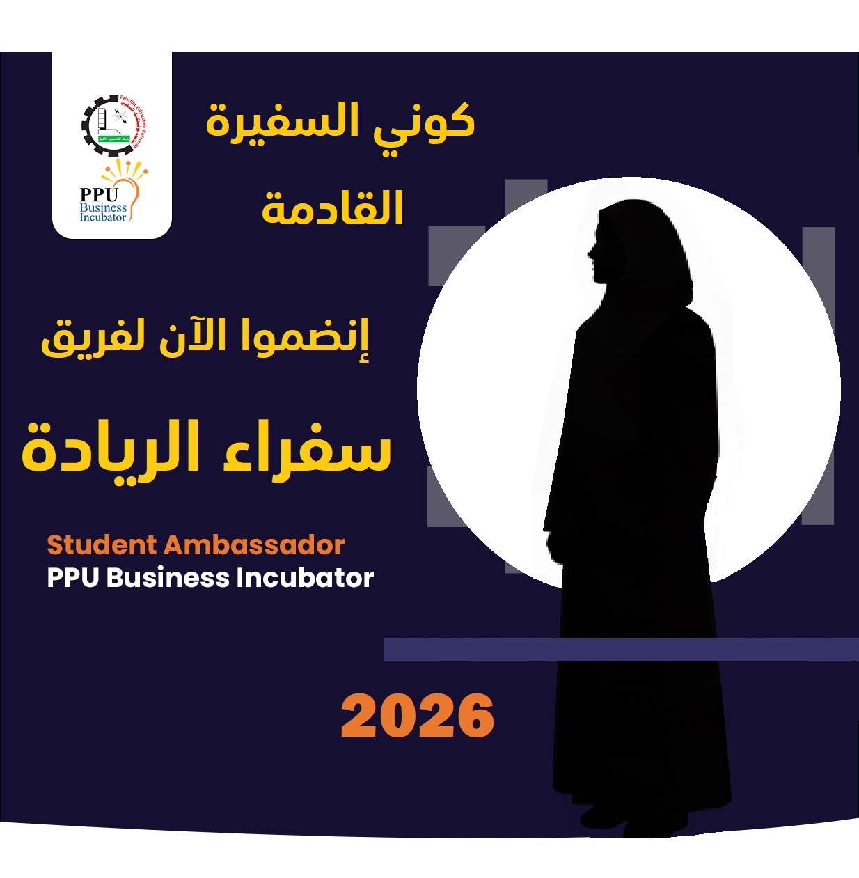 نبحث عن شباب وشابات طموحين، مبادرين، يؤمنون بقيمة التغيير، ويرغبون في تمثيل كلياتهم والمساهمة في تصميم برامج وورش ريادية تُحدث أثراً حقيقياً.