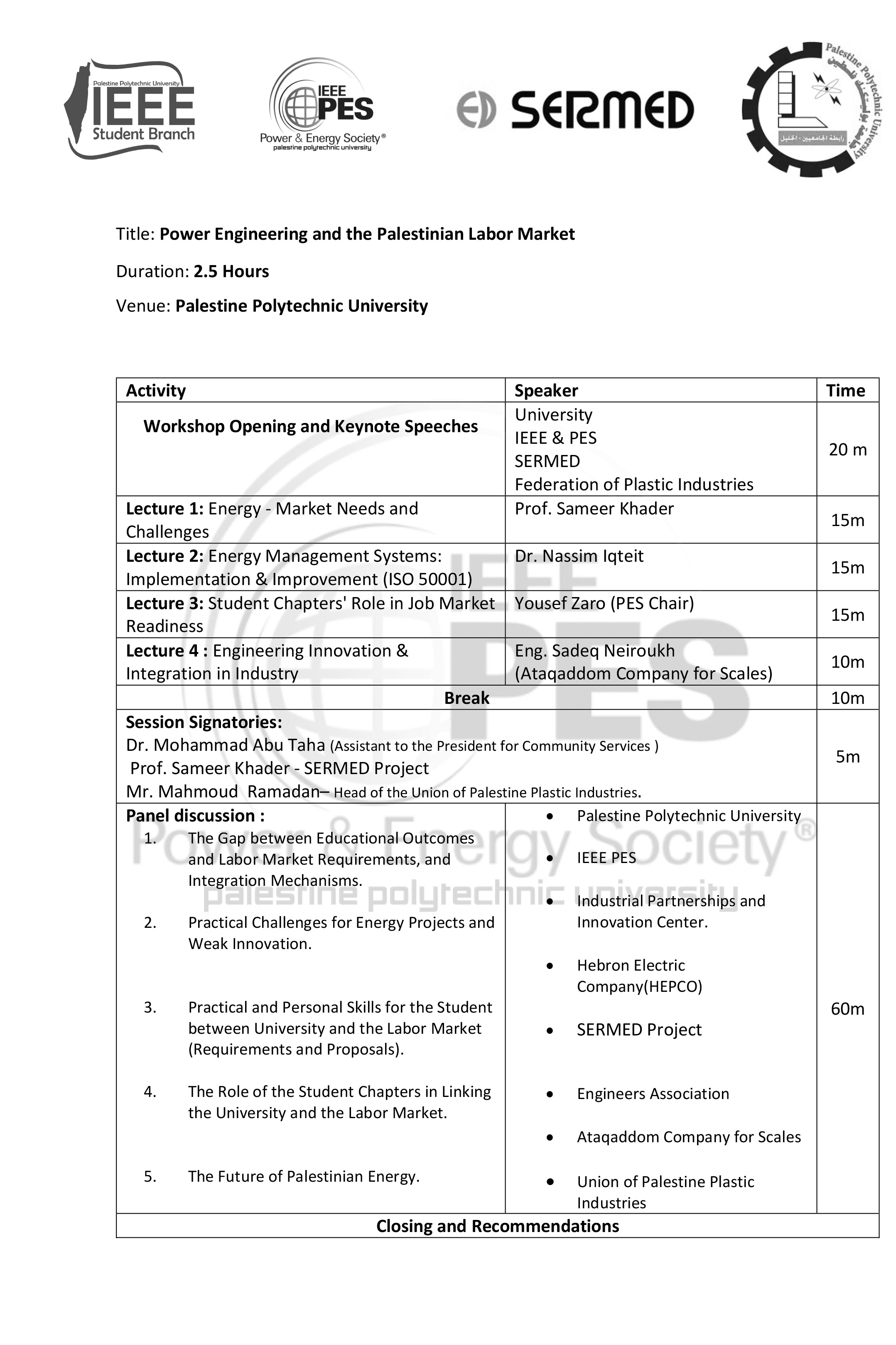 تتشرف جامعة بوليتكنك فلسطين بدعوتكم لحضور ورشة العمل المتخصصة بعنوان: