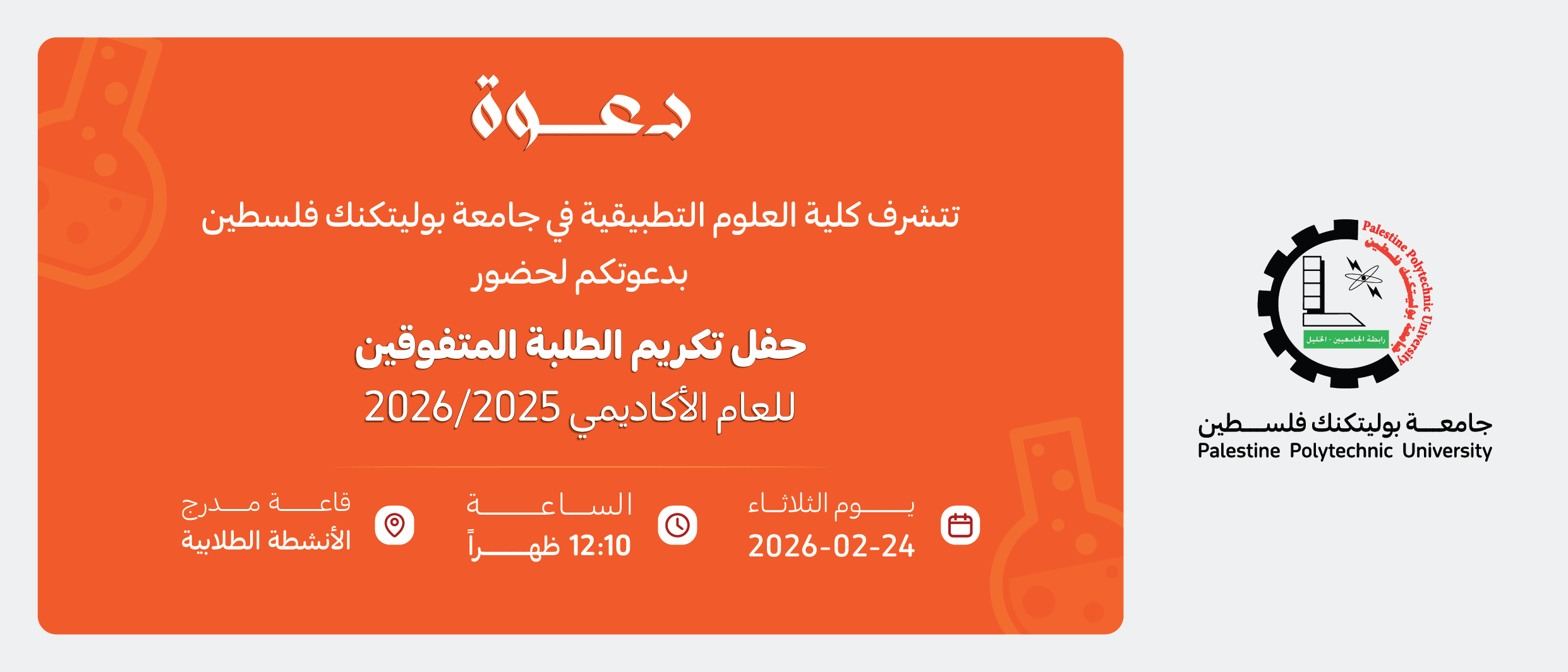 تتشرف كلية العلوم التطبيقية في جامعة بوليتكنك فلسطين بدعوتكم لحضور