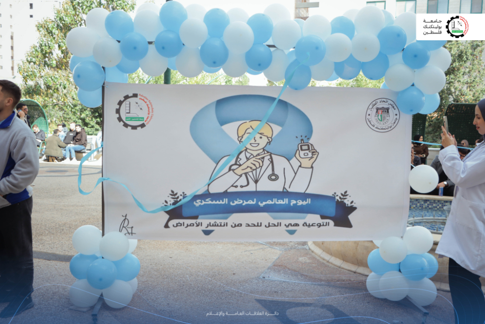 الثلاثاء 18/11/2025- نظّمت كلية التمريض في جامعة بوليتكنك فلسطين، يوم الاثنين الموافق 17 نوفمبر، فعالية توعوية بمناسبة اليوم العالمي للسكري، وذلك بمشاركة جمعية سكري فلسطين وطلبة التمريض، وبهدف تعزيز المعرفة الصحية ونشر الوعي حول مرض السكري.