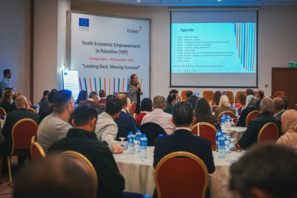 الأحد 30/11/2025- شاركت جامعة بوليتكنك فلسطين ممثلة بعمادة التدريب المهني والتعليم المستمر في فعاليات الحفل الختامي لأعمال مشروع التمكين الاقتصادي للشباب في فلسطين (YEP) بتنظيم من قبل الوكالة البلجيكية للتعاون الدولي (Enabel) وبتمويل مشترك من الحكومة البلجيكية والاتحاد الأوروبي، وبحضور رسمي رفيع المستوى ضمّ كلاً من مدير عام الوكالة البلجيكية والقنصل البلجيكي العام في فلسطين وممثل الاتحاد الأوروبي ومعالي وزيرة العمل الفلسطينية وعطوفة وكيل وزارة التربية والتعليم العالي.