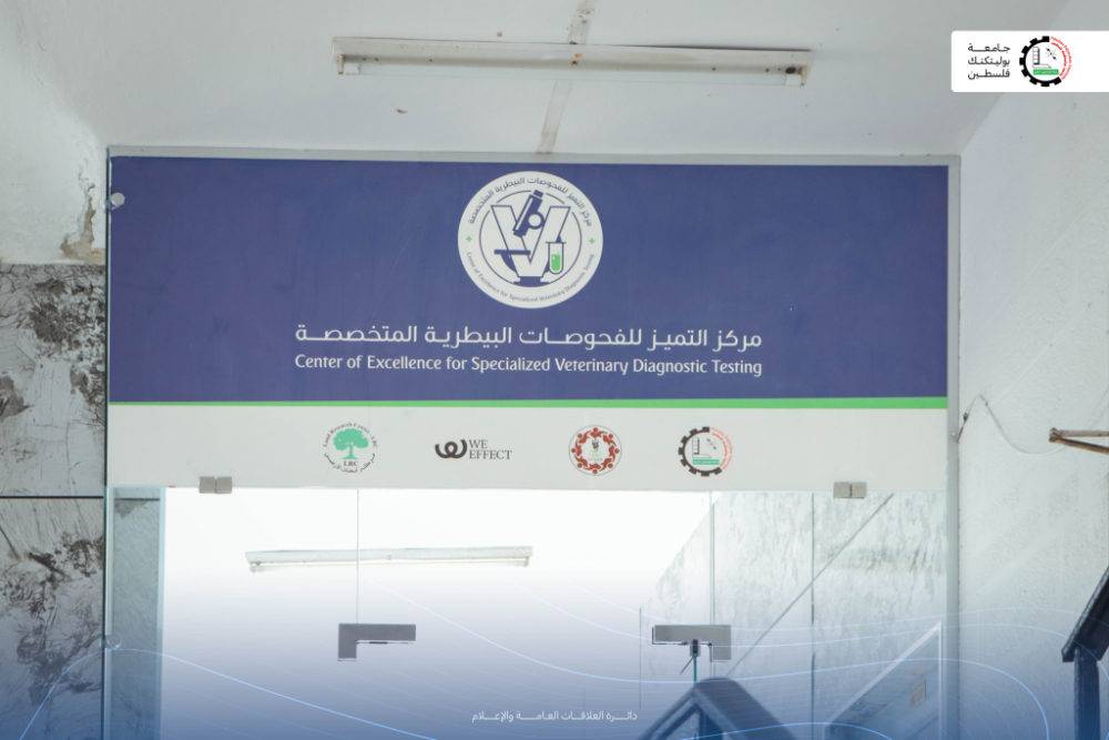 وفي هذا السياق، احتفلت الجامعة اليوم الأحد الموافق 21/12/2025 بافتتاح "مركز التميز للفحوصات البيطرية المتخصصة"، وذلك في مبنى رابطة الجامعيين، تحت رعاية معالي وزير الزراعة الفلسطيني، ورئيس وأعضاء مجلس أمناء رابطة الجامعيين وجامعة بوليتكنك فلسطين. بحضور نواب رئيس الجامعة، إلى جانب طاقم الهيئتين الأكاديمية والإدارية، وممثلي مؤسسات المجتمع المحلي. ويأتي هذا الإنجاز ثمرة للشراكة الاستراتيجية بين الجامعة وجمعية الأطباء البيطريين، وبتمويل كريم ضمن مشروع "We Effect"، وتنفيذ مركز ابحاث الاراضي ليكون مرجعاً علمياً وتشخيصياً متطوراً.