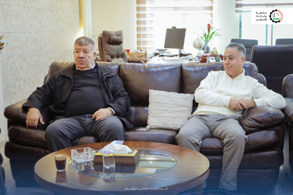 الاثنين ٢٩/١٢/٢٠٢٦- استقبل رئيس جامعة بوليتكنك فلسطين الدكتور مصطفى أبو الصفا، في مكتبه، مدير الإنتاج والجودة في الشركة الفلسطينية للزيوت المعدنية “بتروبال” السيد معتصم أبو ريان، وذلك في إطار الشراكة القائمة بين الجانبين وتعزيز التعاون المشترك في المجالات الفنية والهندسية.