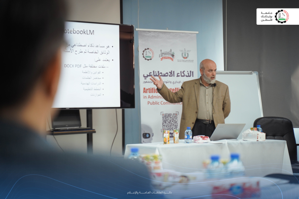 وتضمّن اليوم الأول عدداً من الجلسات العلمية والتطبيقية التي قدّمها خبراء وأكاديميون من جامعة بوليتكنك فلسطين، حيث استعرض الدكتور علاء الحلواني المفاهيم الأساسية للذكاء الاصطناعي، وقدّم الدكتور هاشم التميمي والمهندس محمد الجعبري نماذج تطبيقية لاستخداماته في العمل المؤسسي، فيما تناول الدكتور هاني صلاح مهارات هندسة الأوامر، واختتم الدكتور زين الدين صلاح بمحور الضوابط والإرشادات للاستخدام المسؤول للتقنيات الذكية. كما قدّم مدير دائرة تكنولوجيا المعلومات في بلدية الخليل المهندس أسامة الدويك عرضاً حول توجهات البلدية في مجال الذكاء الاصطناعي.